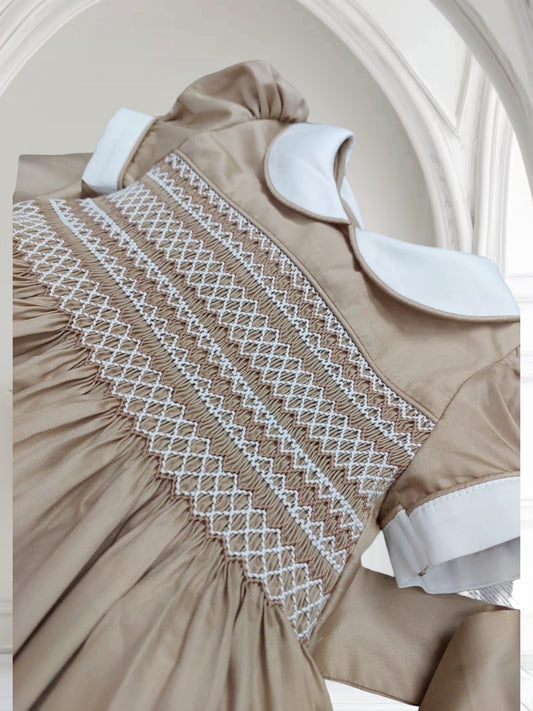 Camel smocked dress