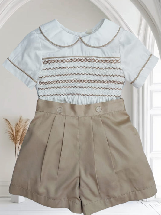 Camel smocked matching boys suits