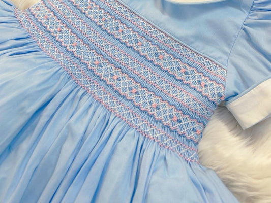 Baby Blue Hand-Smocked Dress