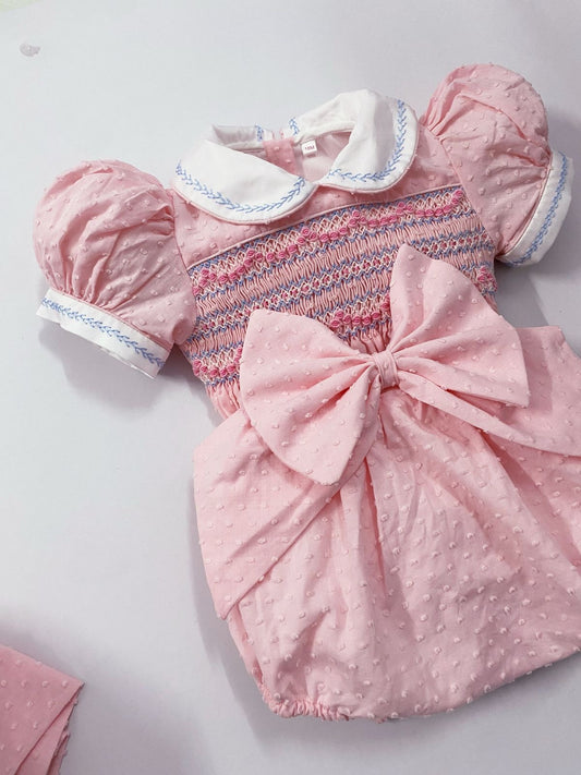 Pink Luxe Swiss dot smocked dress ( matching romper available)