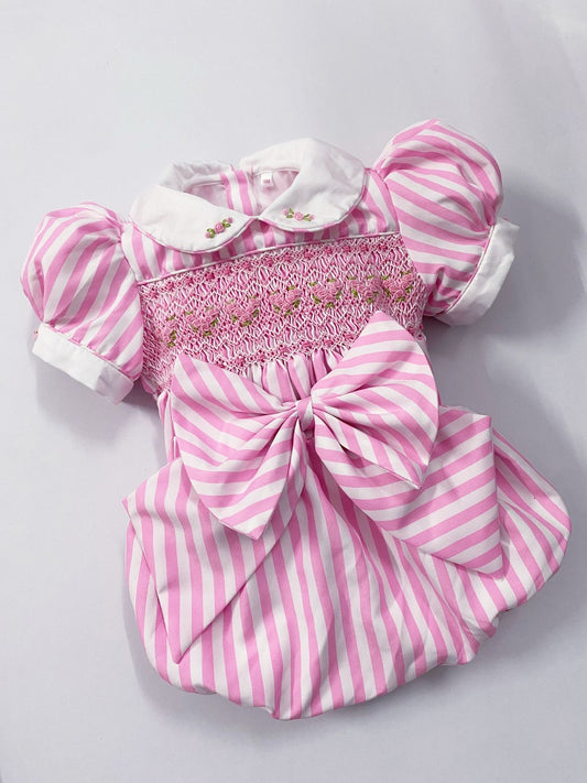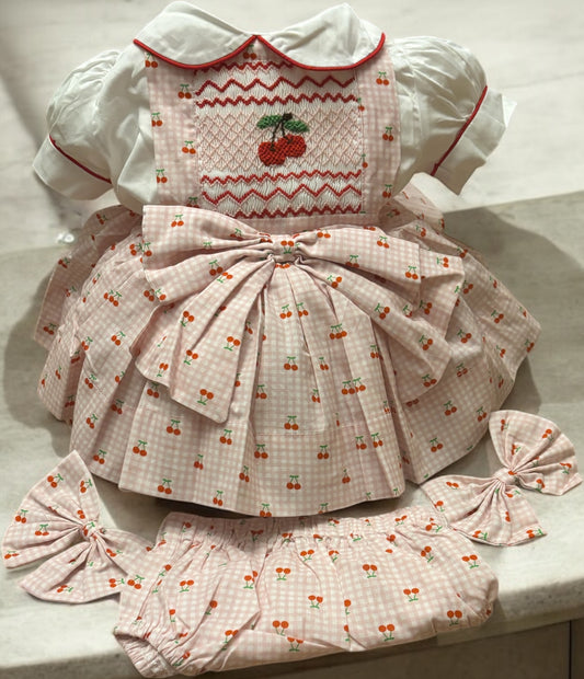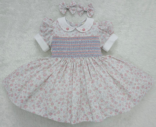 Blush Rose Hand-Smocked Dress with Matching Hair Bows