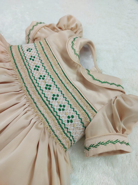 Rich Gold and Emerald Green Smocked Back & Front