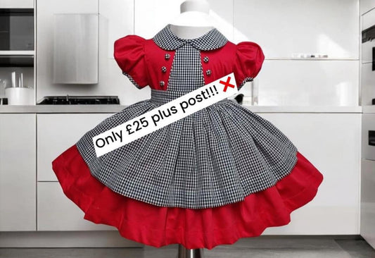 Red dress with black and white full pinny