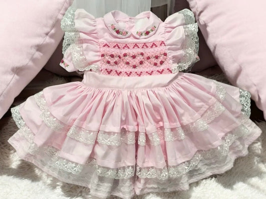 Pink classic dress with smocked pinny
