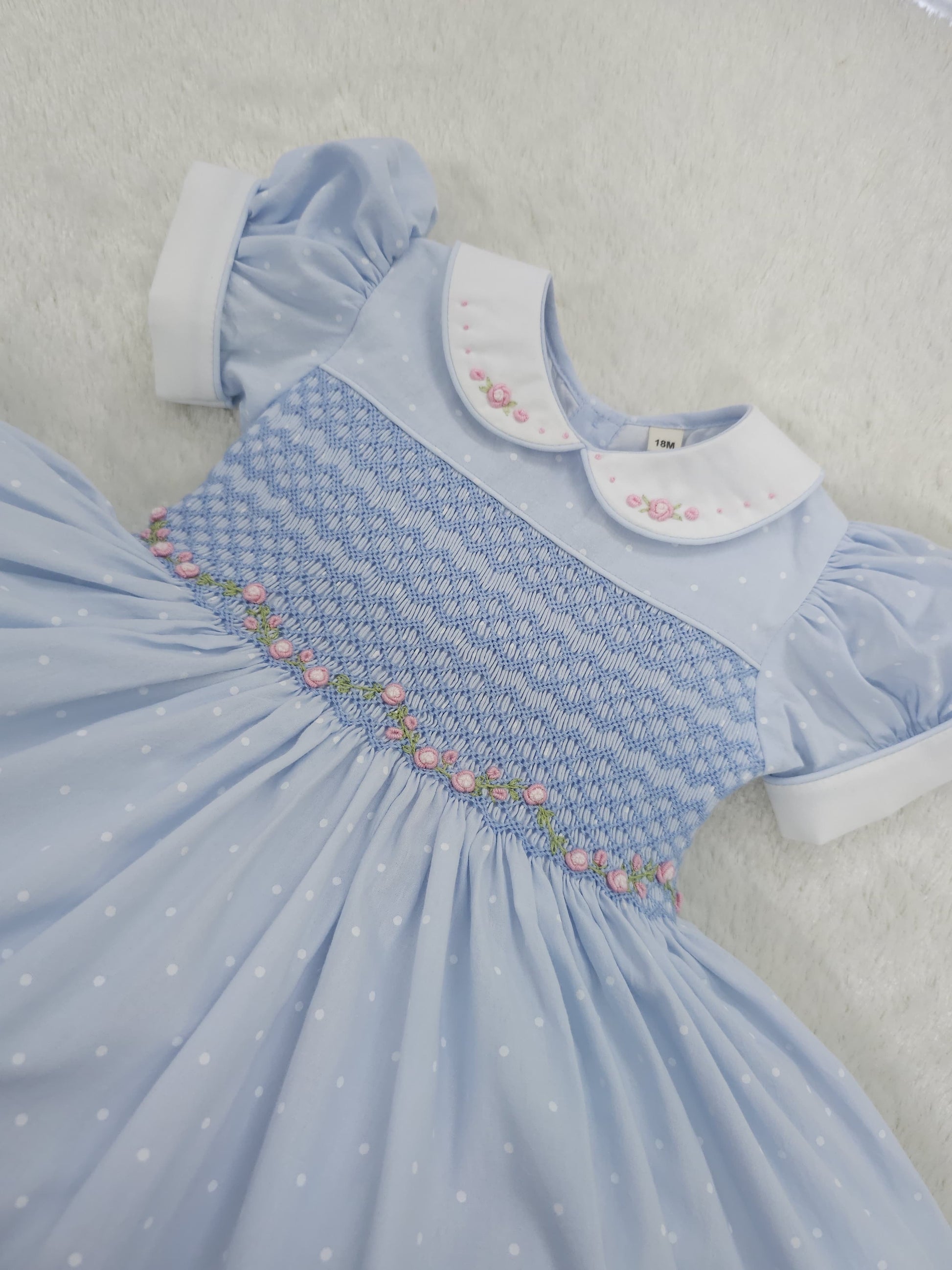 Blue polkadot smocked dress HERE IN 10 DAYS
