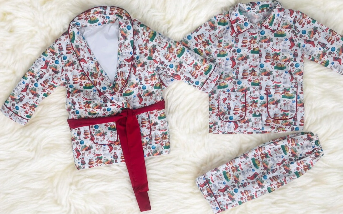 Boys Christmas jarmas and matching quilted dressing coat ( for girls sets available )