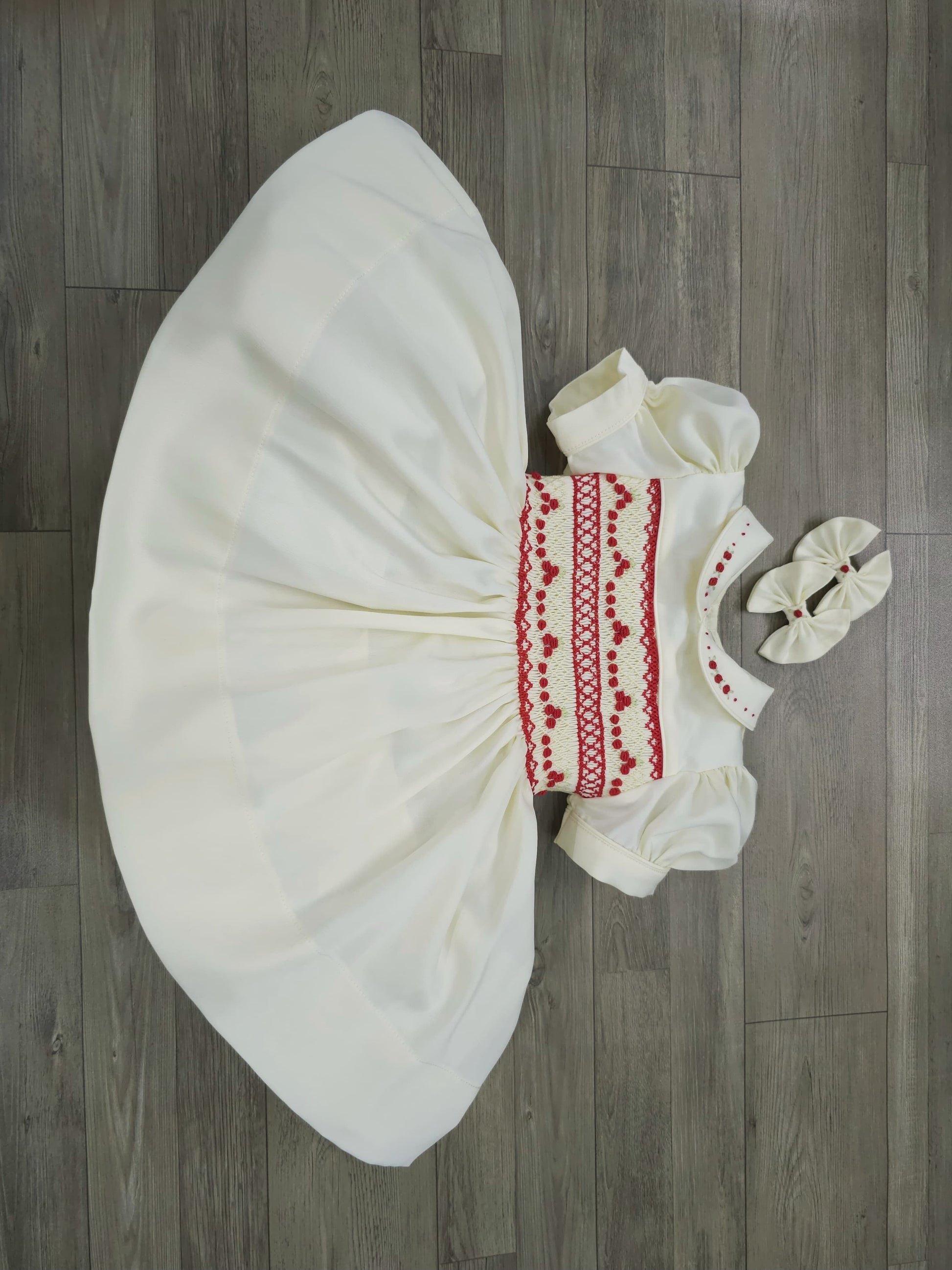 Cream and red smocked dress PRE ORDER HERE IN 2 WEEKS