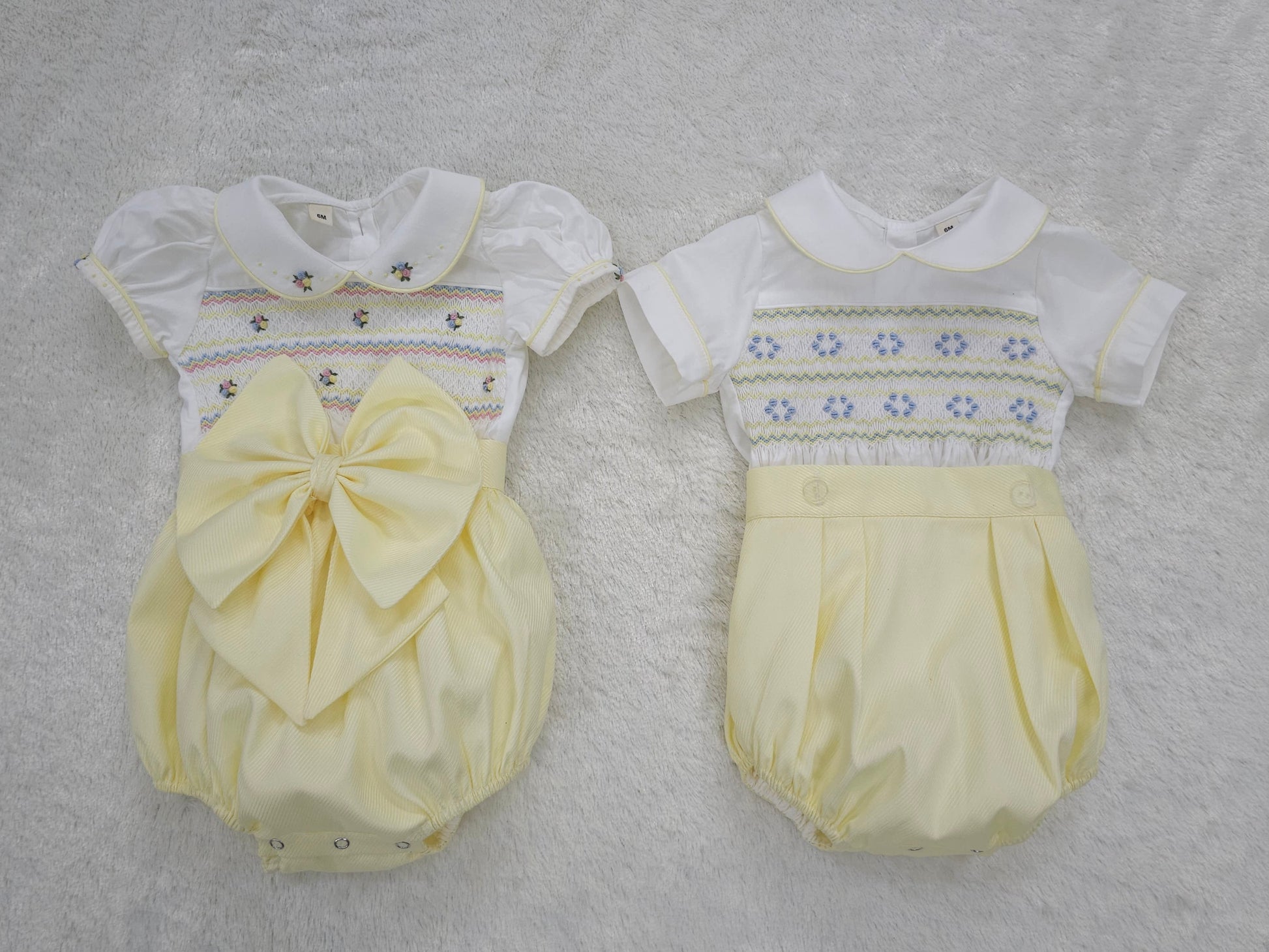 Lemon smocked girls romper ( got matching dress and boys romper available )